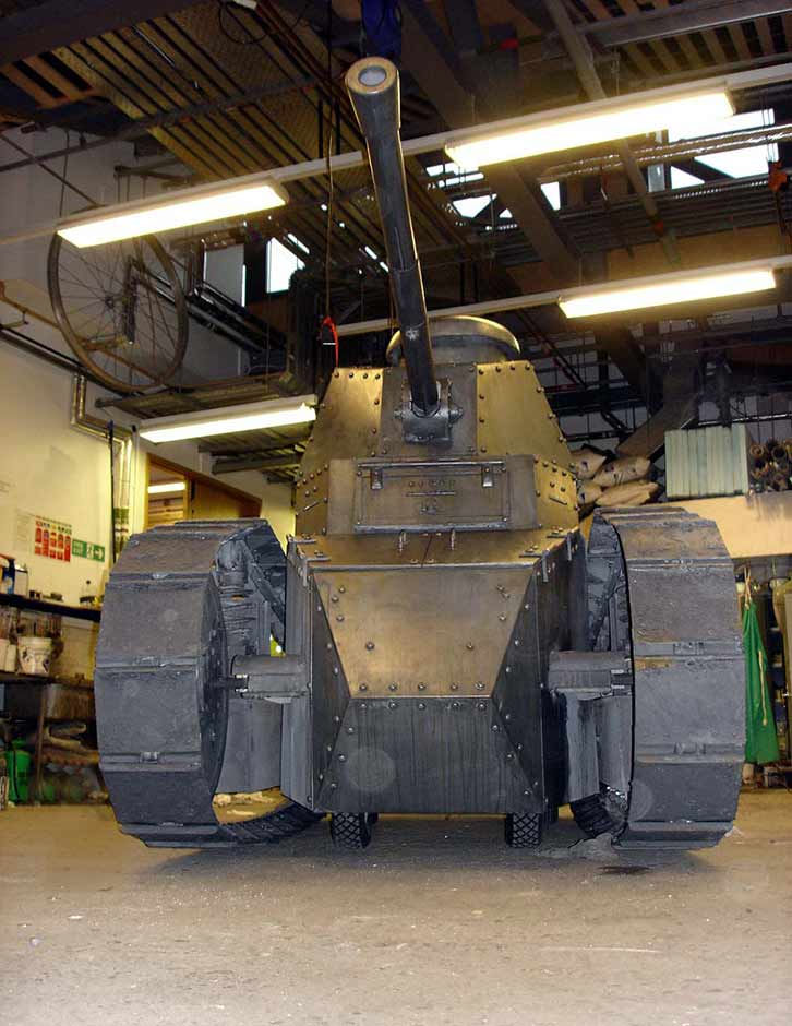 Engineered to drive with geared tracks, a rotating turret and expanding tank gun. Made with a steel box frame and clad with timber. Painted and broken down with rust affect.